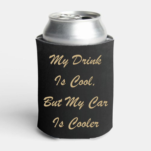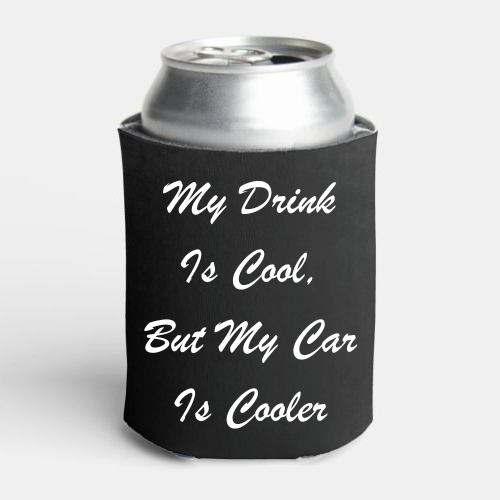 • Bold gold or white print: “My drink is cool but my car is cooler”